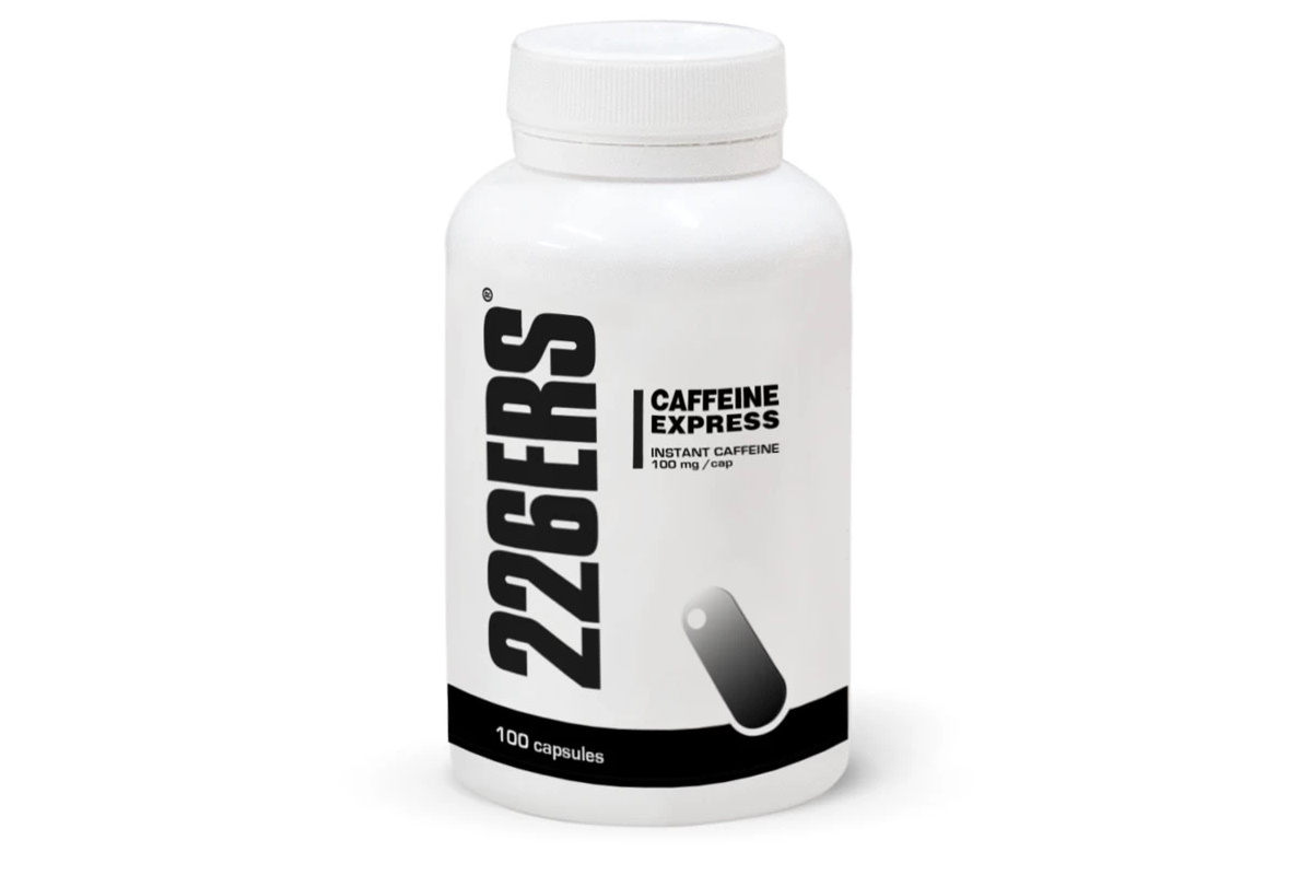 Caffeine express son cápsulas que contienen 100 mg de cafeína anhidra, aptas para veganos, sin gluten, sin lactosa y sin azúcares añadidos.