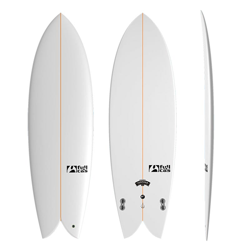 Tabla de surf Twin fin FULL AND CAS Ventura, con sistema de quillas Future.