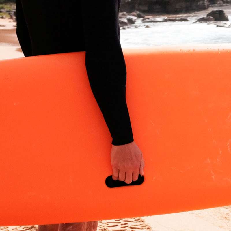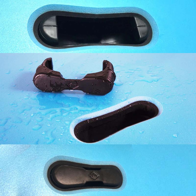 Asa Softboard SoftechTiene un asa que facilita su transporte hasta la orilla. El asa es reversible dejando una cavidad para poder meter la mano y transportarla. Y si le das la vuelta al asa se pone totalmente plana para poder practicar surf sin problema de meter el pie en ningún agujero.