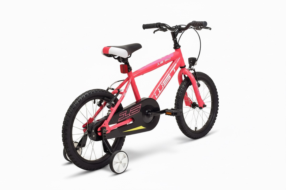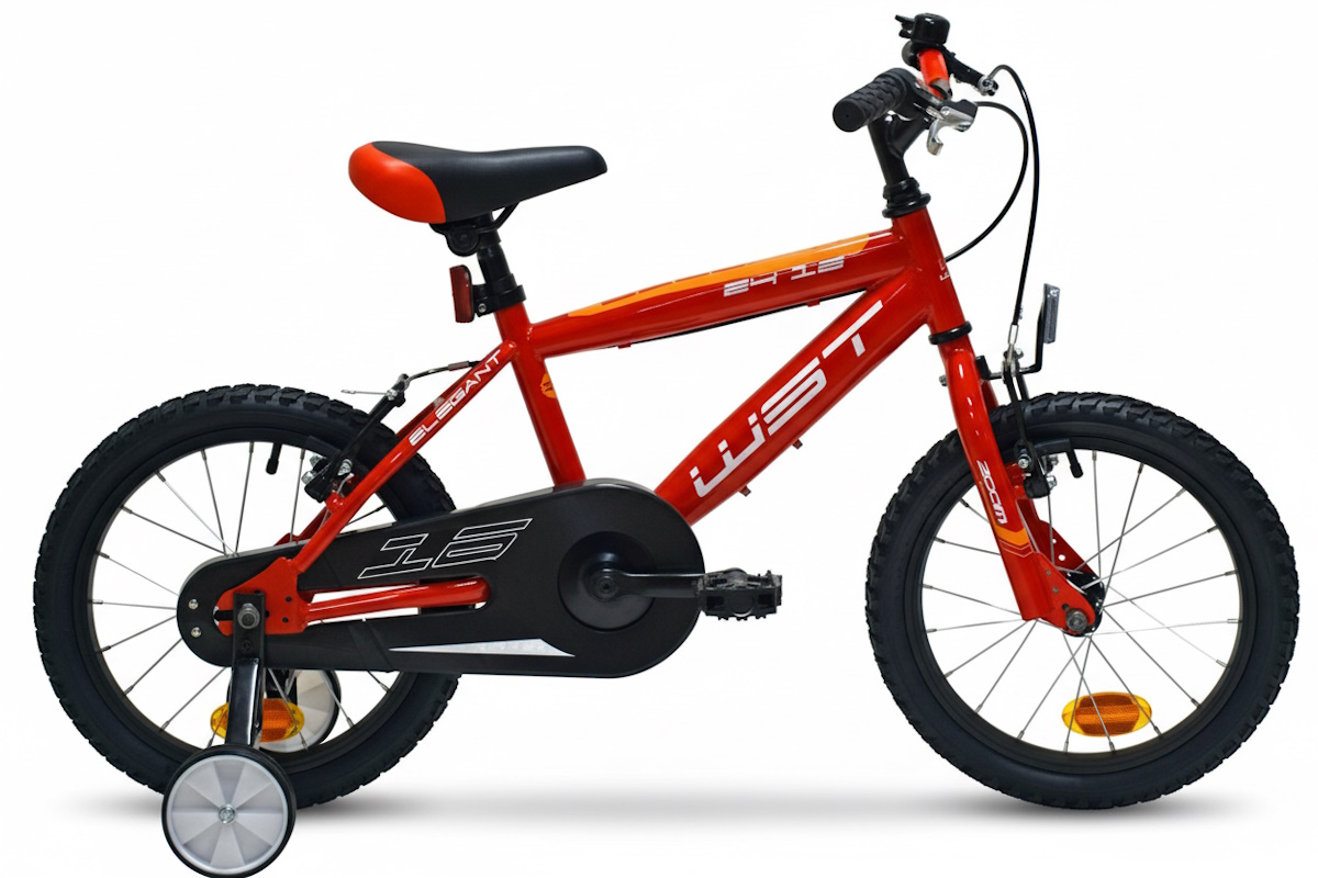 - WST 16″ Elegance: cuadro Hi‑Ten, V‑Brakes de aluminio, ruedas WST de aluminio y cubiertas 16×1.75 para control y confianza. Incluye estabilizadores, timbre y catadióptricos. En thebike.es vendemos bicicletas reparables y ajustables, no juguetes.