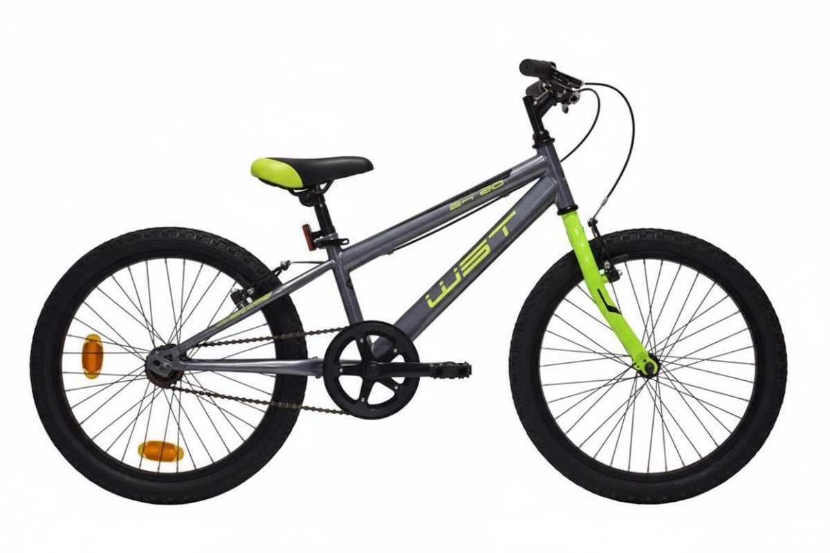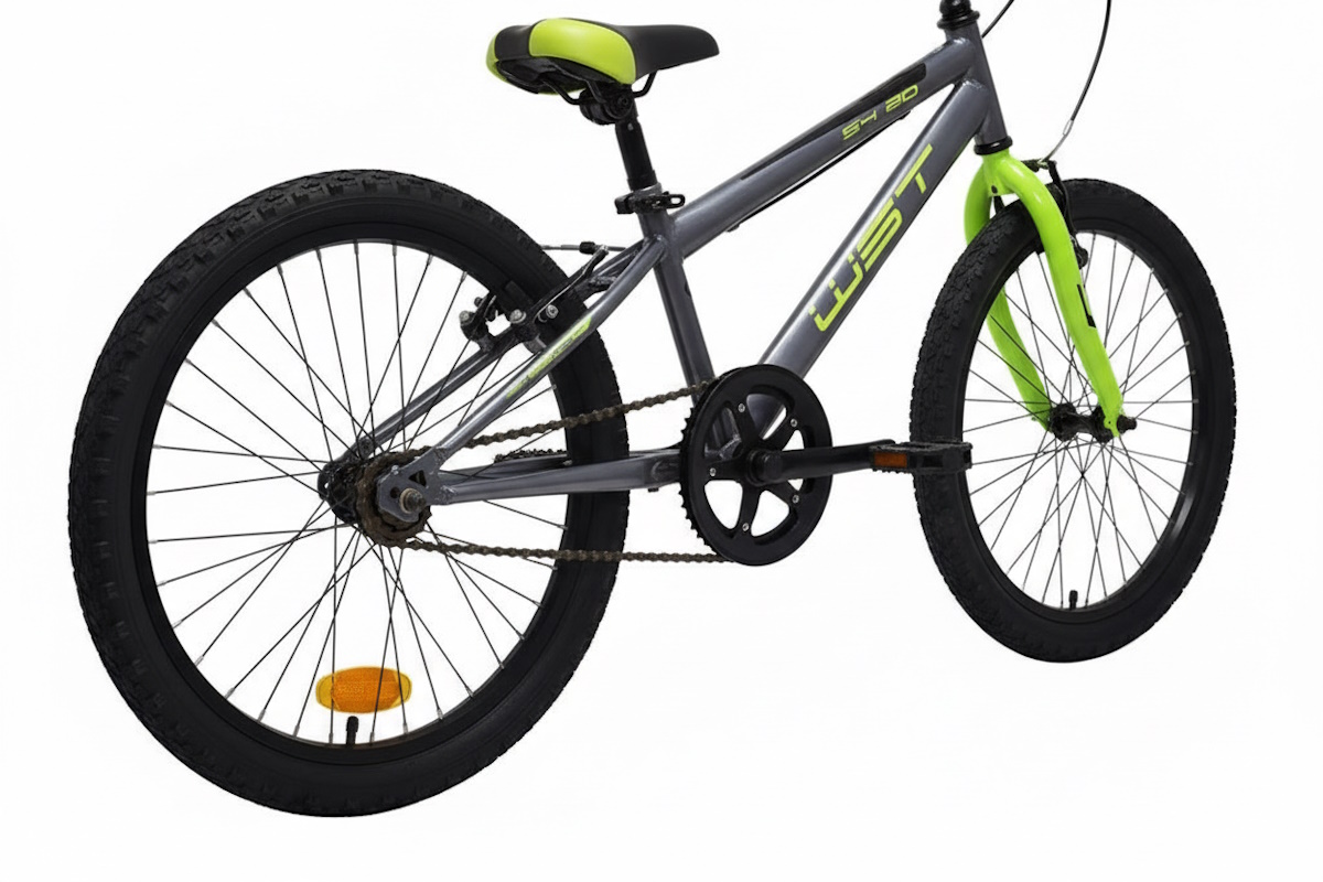 • La WST 20″ 1V ofrece simplicidad y control: cuadro Hi‑Ten, transmisión monoplato 1 velocidad y V‑Brakes de aluminio. Ruedas WST de aluminio con blocaje delantero, cubiertas 20×2.125 y dirección con rodamientos. Incluye caballete y catadióptricos. En thebike.es vendemos bicicletas reparables y ajustables, no juguetes.